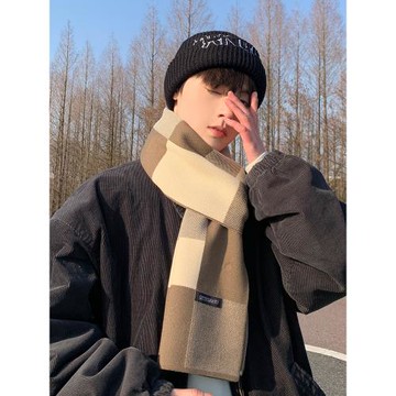 冬季韓版潮百搭男士圍巾羊毛高檔年輕人學生時尚簡約加厚保暖圍脖