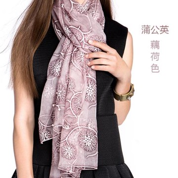 圣雅詩蒂新款絲巾女秋冬韓版高檔刺繡長款圍巾女紗巾披肩兩用