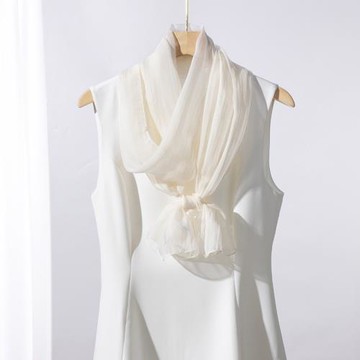 白色桑蠶絲紗巾女春秋薄款2025新款淺米色真絲絲巾窄長條媽媽圍巾