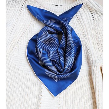 早春新 簡約氣質幾何小方巾高品質斜紋真絲圍巾桑蠶絲絲巾手工邊