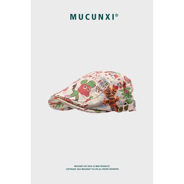 點我下載日系小眾可愛涂鴉前進帽女復古童趣搞怪報童畫家帽反戴貝雷帽男潮