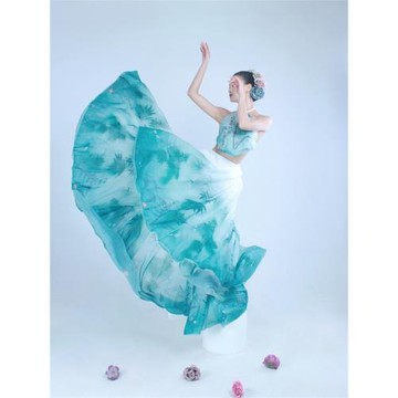點我下載WYZ蓋蓋中國元素竹子印花漸變大擺裙新疆舞舞臺演出肚兜