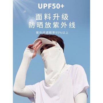 防曬面罩男士生專用帽子一體護頸冰絲全臉面部防紫外線透氣圍脖式