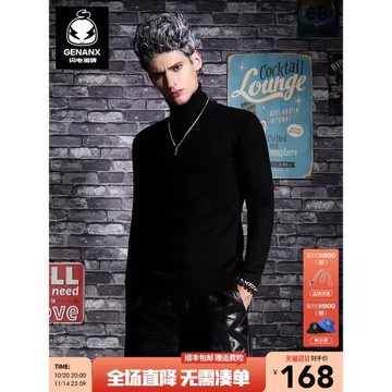 GENANX閃電潮牌黑色內搭打底衫男女秋冬季新款高領針織衫修身毛衣