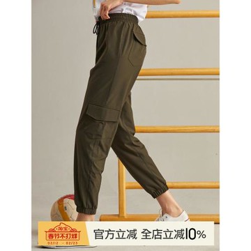 小溪家春季梭織運動褲女顯瘦寬松休閑跑步透氣收腿速干戶外健身褲