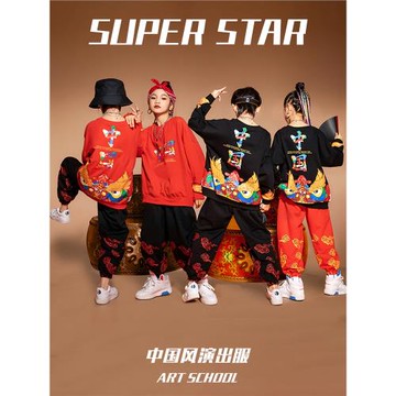中國風兒童演出服中式傳統國潮街舞衛衣套裝少兒小學生運動會班服