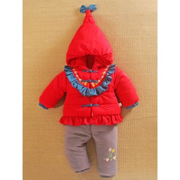 女寶寶秋冬裝外出服紅色夾加厚棉服襖分體款小嬰兒衣服外套裝季天
