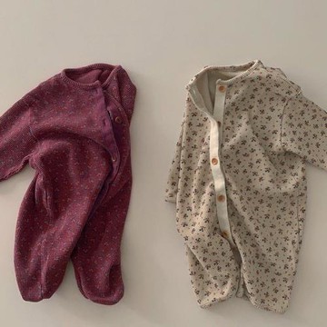 【Deux Filles有機棉】嬰兒長袖側開襟包屁衣/連身衣 粉花