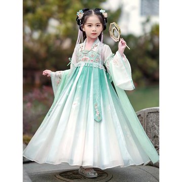 兒童漢服女童2023年春季古裝襦裙甜美民族風小女孩新款唐裝連衣裙