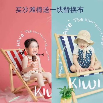 新款海景沙灘攝影輔助道具影樓兒童外景拍照相紅藍條紋沙灘椅沙發