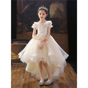 25六一女童禮服香檳色公主裙生日花童長裙小女孩主持人走秀演奏服