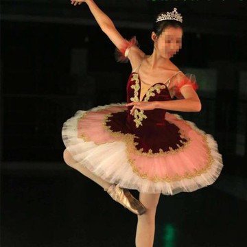 酒紅色芭蕾舞TUTU裙堂吉訶德表演比賽蓬蓬裙演出服成人帕基塔兒童