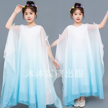 新款古裝漸變女中大童超仙飄逸古箏團體表演出服中國風仙女裝夏季