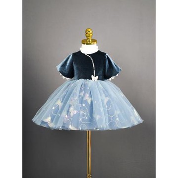 女童周歲宴女寶寶禮服藍色輕奢演出合唱兒童主持人公主裙花童高端