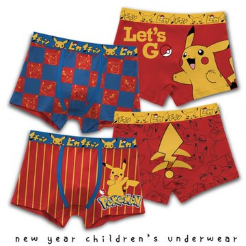 男童內褲兒童純棉A類平角褲皮卡丘小孩中大童紅色本命年四角短褲
