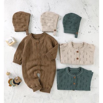 禮物男嬰新生兒回家服裝訂製手工針織套裝連身衣、帽子