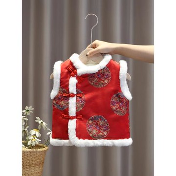 男童唐裝冬季過年服馬甲中國風衣服寶寶外穿唐裝新年裝兒童拜年服