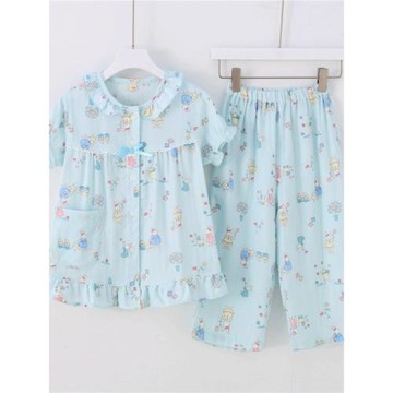 夏天可愛公主紗布短袖七分褲空調房家居服套裝女童睡衣薄款夏純棉