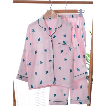 夏季全棉紗布女童短袖和服浴衣套裝純棉女孩兒童睡衣家居服親子款