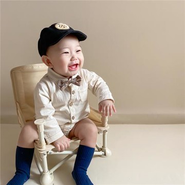 INS款嬰兒連體衣男寶舒適紳士領結周歲百天派對長袖襯衫哈衣爬服