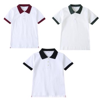 夏季中小學生校服學院風英倫風園服夏裝白色短袖上衣純色衣領套頭