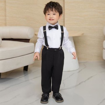 男童禮服春秋英倫風兒童背帶褲套裝帥氣周歲生日寶寶小西裝演出服