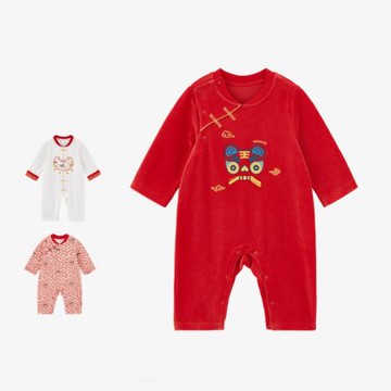 英氏男女寶寶新年唐裝滿月百天連體衣10095516 10095517 10095518