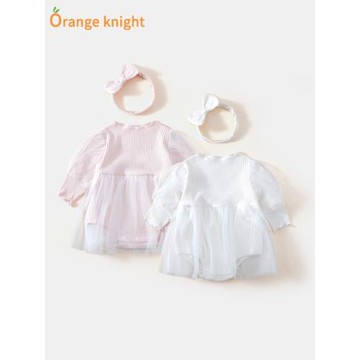 韓版嬰兒衣服春裝女寶寶公主連體超萌包屁裙滿月百天周歲禮服春秋