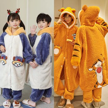 秋冬兒童親子睡衣法蘭絨加厚睡袍套裝男童女童中大童珊瑚絨家居服