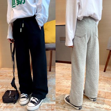 女童休閑直筒褲2025新款夏裝中大童衛褲洋氣闊腿褲顯瘦拖地針織褲