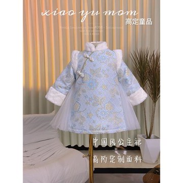 女童旗袍中國風連衣裙加絨唐裝漢服拜年服宴會周歲生日禮服公主裙