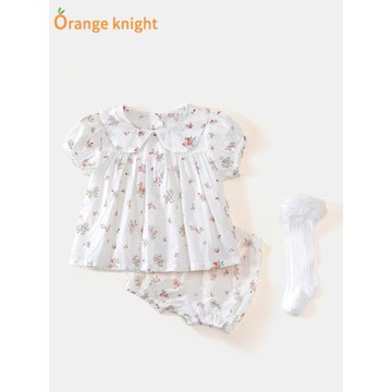 嬰兒夏裝兩件套新生兒女寶寶上下分體套裝韓版碎花裙子外出服薄款