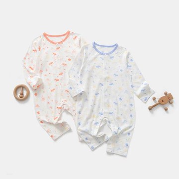春夏嬰兒竹棉長袖連體衣薄款男女寶寶印花透氣空調服無骨縫制