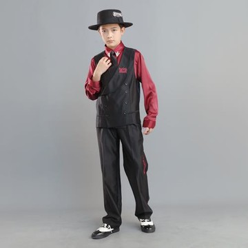 非零旦斯Kids 酒紅金格 少兒街舞西裝Popping套裝Locking馬甲西褲