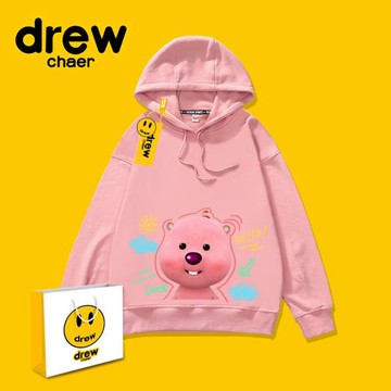 Drew笑臉潮牌黑帽CELNE連帽純棉男女秋冬加絨寬松新款重磅外套ins