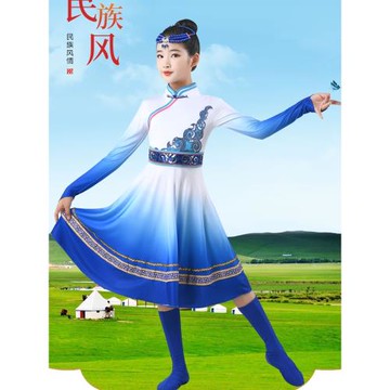 新款蒙古舞蹈服男女童內蒙古裙袍蒙族元素白馬舞筷子舞草原演出服