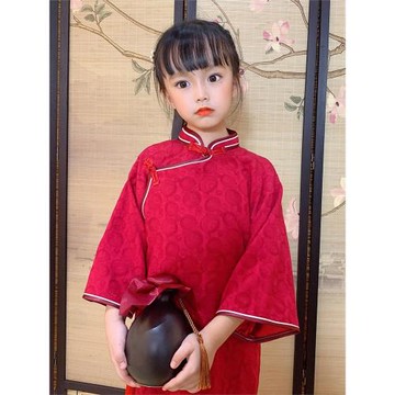 女童旗袍2023新款倒大袖兒童中國風國潮春秋女寶寶唐裝漢服民國風
