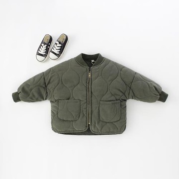 ins日系文藝休閑百搭男女兒童冬款菱形格墨綠色夾棉外套棉衣