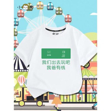 我們出去玩吧我爸有錢沒錢短袖t恤衫男女兒童裝學生寶寶純棉半袖