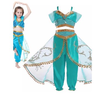 六一兒童cosplay服裝萬圣節阿拉神丁茉莉公主亮片上衣+裙褲2件套