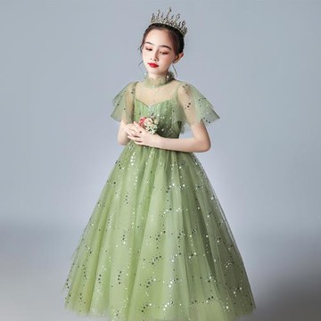 兒童禮服公主裙蓬蓬紗綠色生日森系高端古箏鋼琴演奏女童晚禮服仙