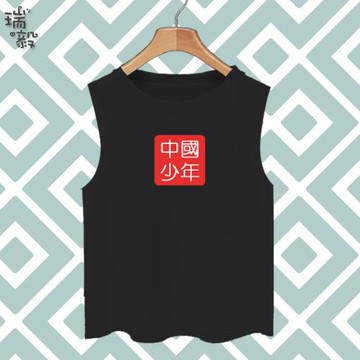 中國少年男孩女孩國潮愛國創意文字純棉背心男女兒童學生無袖T恤