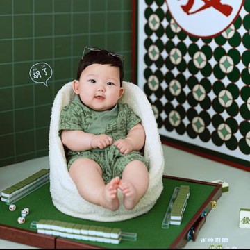 百天寶寶攝影道具兒童攝影服裝麻將館主題2021年展會新款嬰兒照相