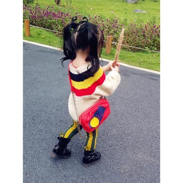 女童毛衣秋冬洋氣公主風寬松兒童冬裝童裝三色條紋拼接甜美針織衫