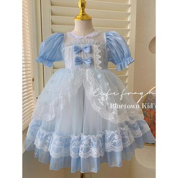 女童洛麗塔公主裙夏季新款兒童重工Lolita裙子洋氣女孩藍色連衣裙