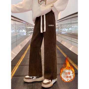 女童一體加絨褲子秋冬款2025新款中大兒童加厚燈芯絨窄版直筒春秋