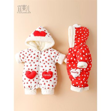 嬰兒衣服冬款連體衣新生帽子冬季兩件套寶寶夾棉棉襖外套保暖哈衣