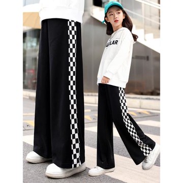女童褲子春秋2025新款格子褲棋盤女中大童寬松休閑長褲秋款闊腿褲