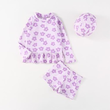 女童泳衣溫泉2025新款兒童分體游泳衣女孩洋氣印花泳裝長袖套裝女