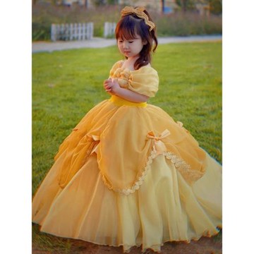 兒童主持禮服演出服短款黃色色亮片公主走秀2020蓬兒童禮服公主裙